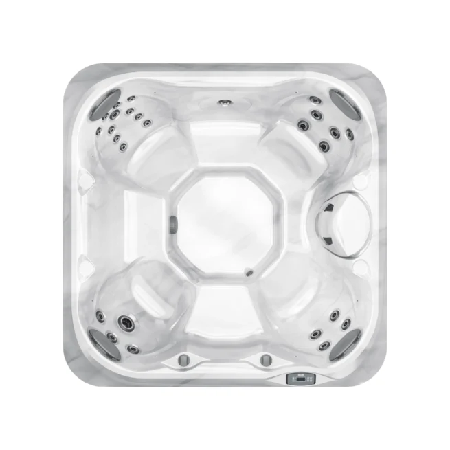 Jacuzzi J-225 to kwadratowa wanna spa o wymiarach 203 × 203 cm i wysokości 84 cm. Oferuje 4 do 5 miejsc siedzących, z czego cztery to dedykowane fotele terapeutyczne z zagłówkami oraz różnymi konfiguracjami dysz. Siedziska zostały rozmieszczone tak, aby zapewnić maksymalną wygodę użytkownikom niezależnie od wybranego miejsca. Uzupełnieniem komfortu są podświetlane zagłówki oraz uchwyty na kubki, które uprzyjemniają korzystanie z wanny także po zmroku.