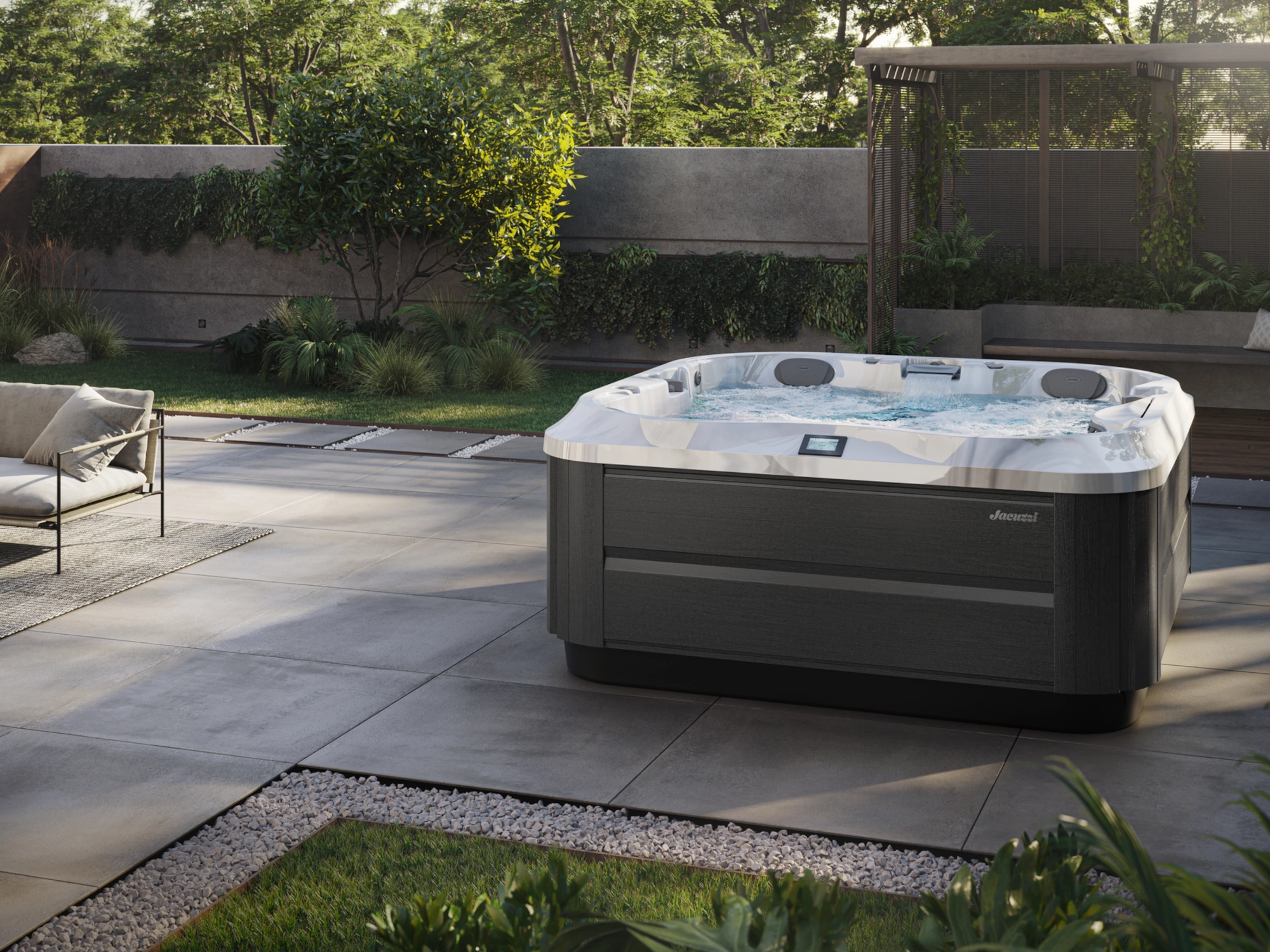 Wanna spa Jacuzzi J-332 wyróżnia się elegancką obudową, nastrojowym oświetleniem obwodowym oraz wykończeniem najwyższej jakości. Panele boczne są trwałe i odporne na warunki atmosferyczne. Zagłówki Slim Soft gwarantują komfort, a nowoczesna poduszka HydroSoothe™ dba o relaks karku i głowy bez rozprysków wody. Kompaktowy rozmiar pozwala na łatwą instalację w większości ogrodów, tarasów lub prywatnych stref spa.