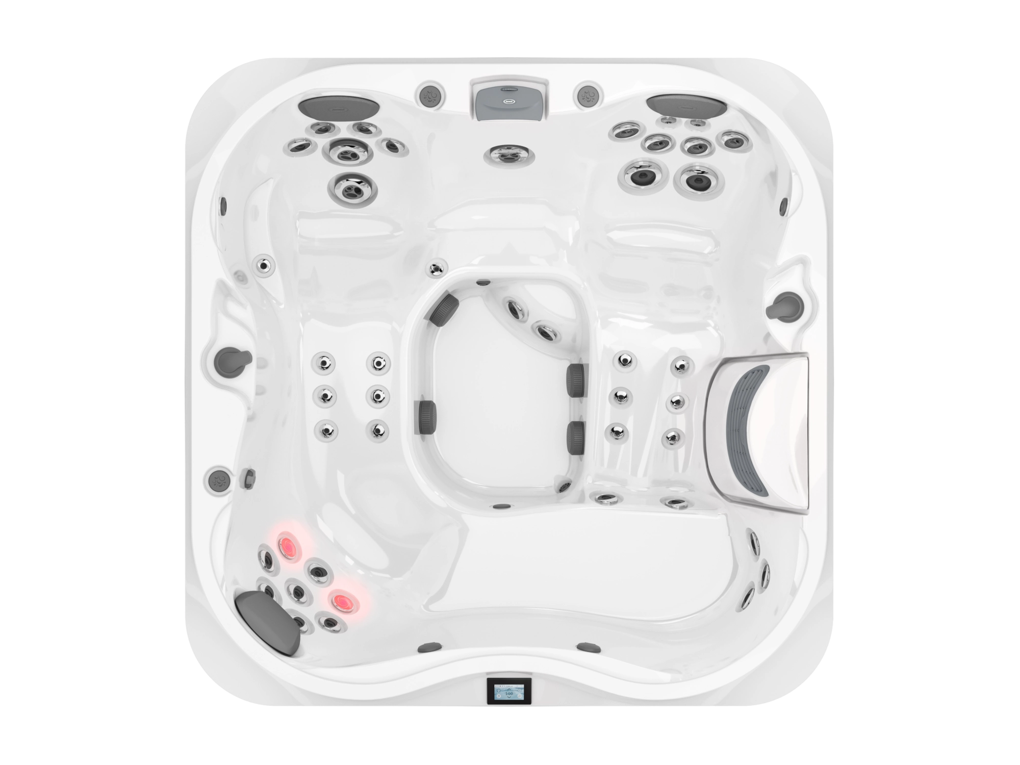 Intuicyjny, kolorowy panel dotykowy LCD umożliwia łatwe sterowanie wszystkimi funkcjami wanny – od ustawień temperatury, przez sterowanie pompą ciepła, po wybór programów masażu i oświetlenia. System jest kompatybilny z nowoczesnymi rozwiązaniami typu SmartTub®, które pozwalają na zdalną obsługę wanny z poziomu smartfona lub tabletu.