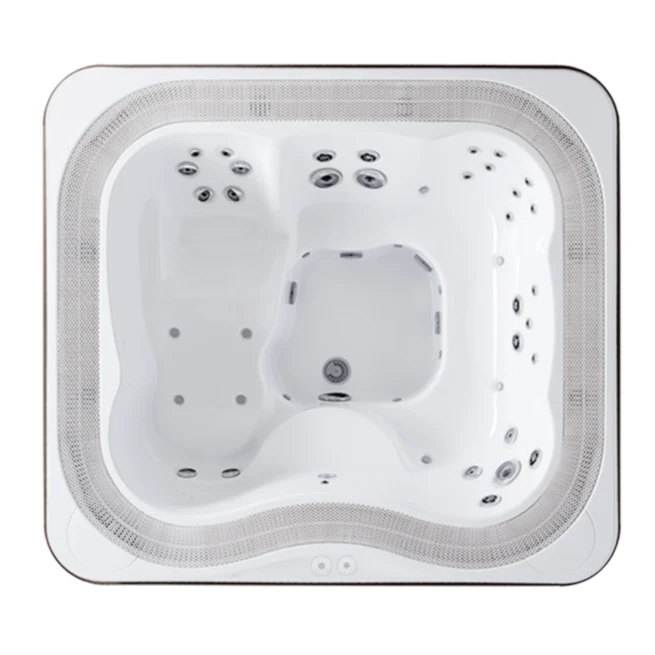 Wanna spa Jacuzzi Profile dysponuje wymiarami 235 × 211 × 93 cm i mieści 5–6 osób. Wnętrze zostało zaprojektowane z myślą o maksymalnym komforcie: do dyspozycji jest ergonomiczna leżanka lounge i wygodne siedziska z precyzyjnie rozmieszczonymi dyszami ze stali nierdzewnej. Kwadratowa forma z zaokrąglonymi rogami oraz szeroka ramka typu infinity podkreślają elegancję i optycznie powiększają przestrzeń kąpielową. Regulowane zagłówki oraz kanapa zapewniają każdemu użytkownikowi perfekcyjne podparcie ciała.