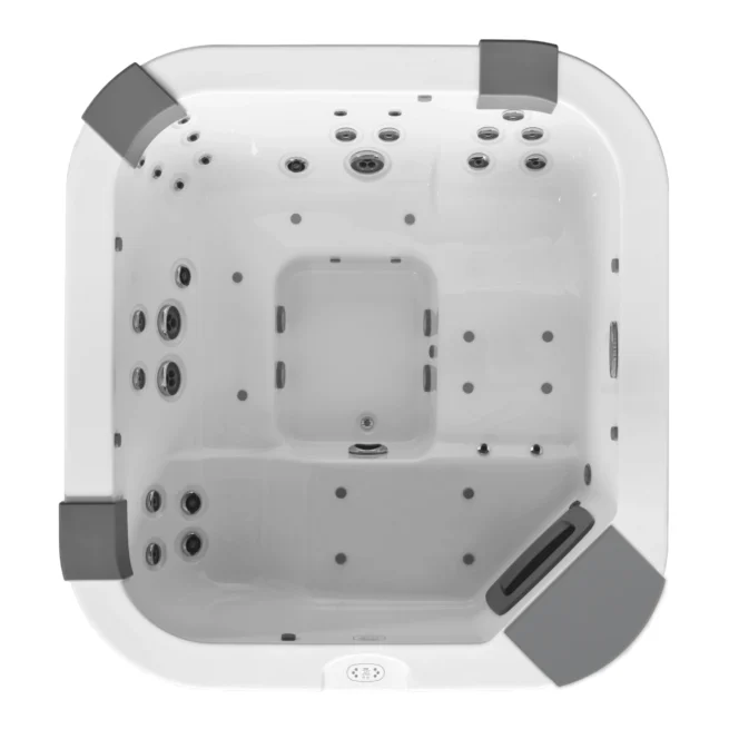 Santorini wyposażono w dwa silniki hydromasażu o mocy 2,5 HP każdy oraz wydajną pompę cyrkulacyjną zapewniającą stały obieg i czystość wody. Obsługa funkcji masażu i temperatury oraz nastrojowego oświetlenia LED jest wygodna i intuicyjna dzięki zaawansowanemu panelowi sterowania. Model przystosowano zarówno do montażu na zewnątrz, jak i wewnątrz, na podłodze lub wbudowanej instalacji.