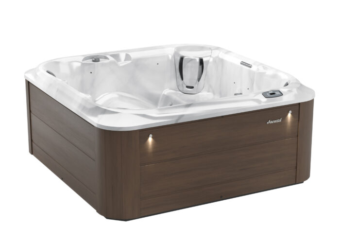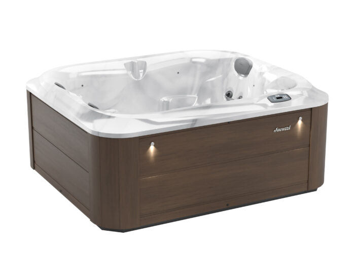 Jacuzzi J-215™ to kompaktowa, 3-osobowa wanna spa z wygodną leżanką, która gwarantuje relaks i skuteczny hydromasaż w każdym ogrodzie lub na tarasie.