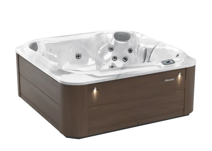 Jacuzzi J-215™ to kompaktowa, 3-osobowa wanna spa z wygodną leżanką, która gwarantuje relaks i skuteczny hydromasaż w każdym ogrodzie lub na tarasie.